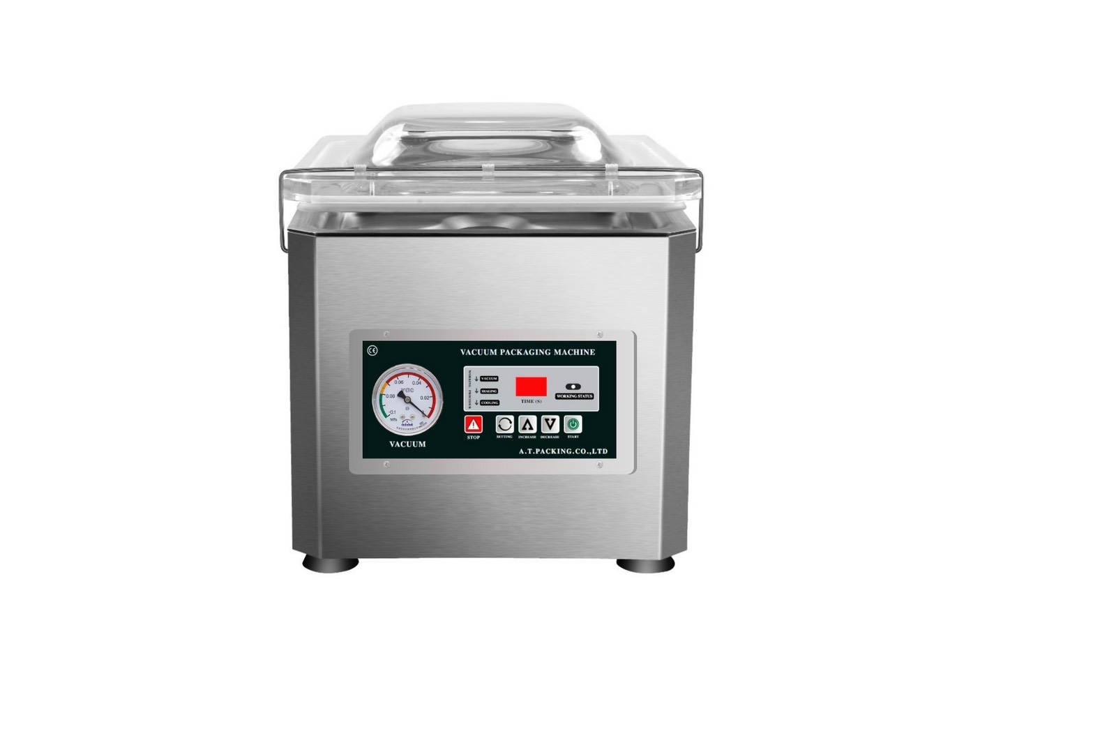 เครื่องซีลสูญญากาศ แบบอุตสาหกรรม ร้านอาหารโรงแรม โครงสร้างทำด้วยแสตนเลส ห้องสูญญากาศผลิตด้วยการเชื่อมขึ้นรูป สามารถใช้งานติดต่อกันได้ 4 ชั่วโมงต่อเนื่อง ทนทาน กันสนิม มีห้องแพ็คสูญญากาศ จำนวน 1 ห้อง มีขนาดแท่งซีลยาว 26 CM. จำนวน 1 แถบซีล มีระบบการตั้งค่าแสดงด้วยระบบดิจิตอล 1 โปรแกรม ตั้งค่าการดูดอากาศ การซีล การทำให้เย็น โดยสามารถตั้งค่าได้หลากหลายให้เหมาะสมกับสินค้าและบรรจุภัณฑ์ เหมาะสำหรับการแพ็คข้าวสาร แพ็ค 0.5 กก ได้ครั้งละ 2 บล็อก และ แพ็ค 1 กก ได้ครั้งละ 1 บล็อก และสามารถแพ็คลูกชิ้น ผัก ผลไม้ อาหาร เป็นต้น